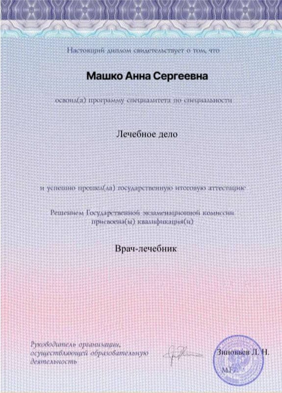 • 2019 — Ростовский государственный медицинский университет (психиатрия-наркология)